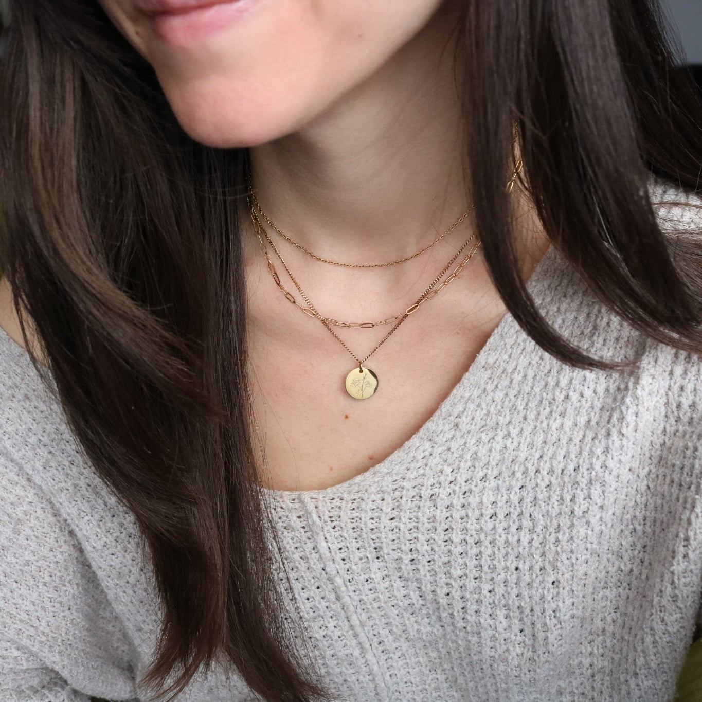 Custom Birth Flower Layered Necklace – 3-in-1 Gold Necklace | Lazee Jewelry